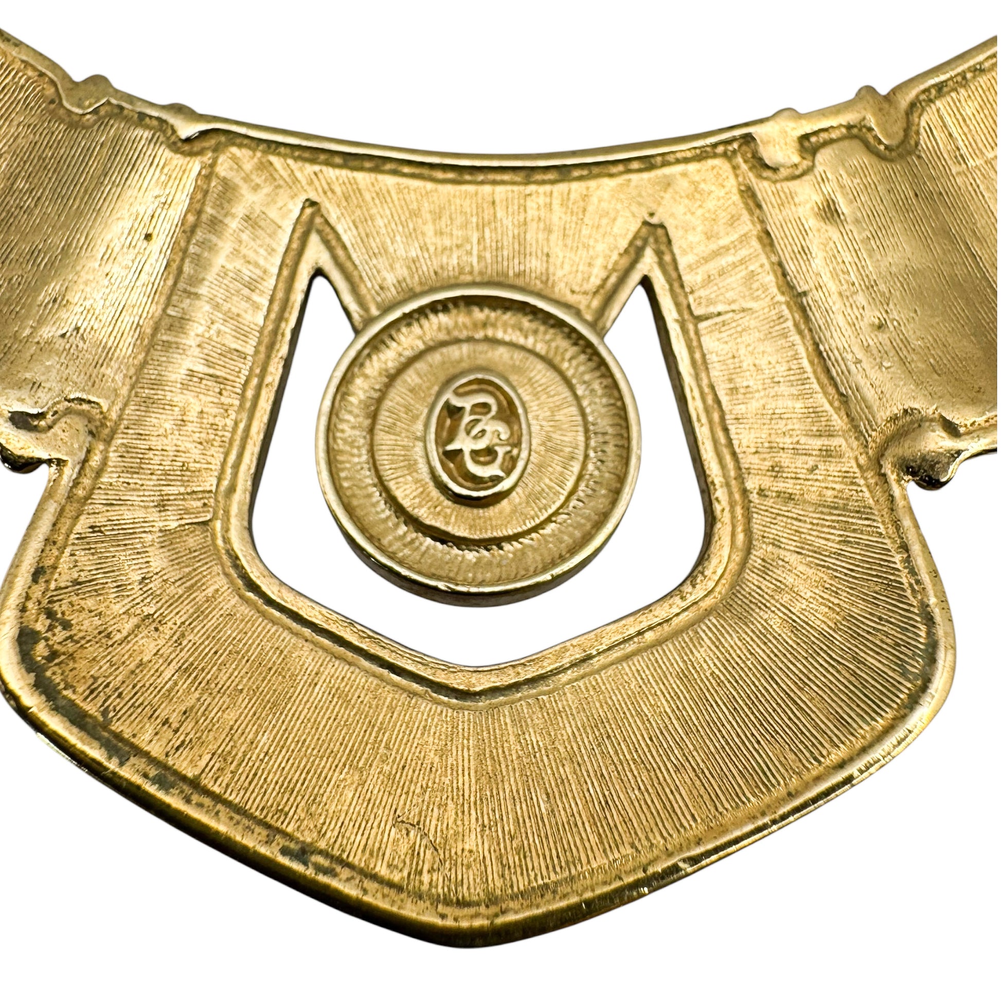 Bu imzalı BG Bergdorf Goodman vintage choker kolye, 1970–1980’lerin ışıltısını yansıtan zarif bir parçadır. Krem mine detayları ve göz alıcı rivoli taşlı ışıltılı kristaller, altın tonlu yassı zincirle buluşarak cesur ama zamansız bir şıklık sunar.