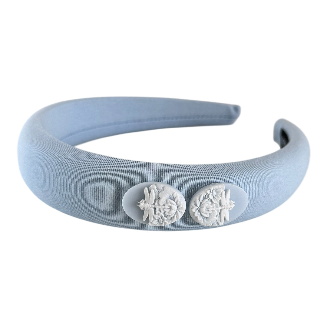 Zamansız zarafetle modern sadeliği buluşturan bu zarif taç, yumuşak bebe mavisi dokusu ve üzerindeki Wedgwood tarzı kabartmalarla göz alıcı bir uyum sunar. Klasik beyaz-mavi tonlardaki cameolar, neoklasik bir hava katarken, modern tasarımıyla günümüz stiline kusursuzca eşlik eder. Günlük şıklık ya da özel anlar için nostaljik ama sade bir dokunuş arayanlara özel.