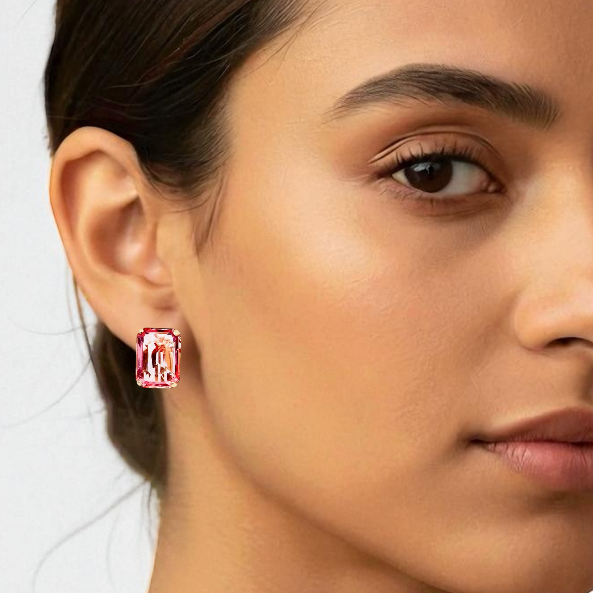 - Tasarım: Dikdörtgen kristal taş detaylı klipsli küpe