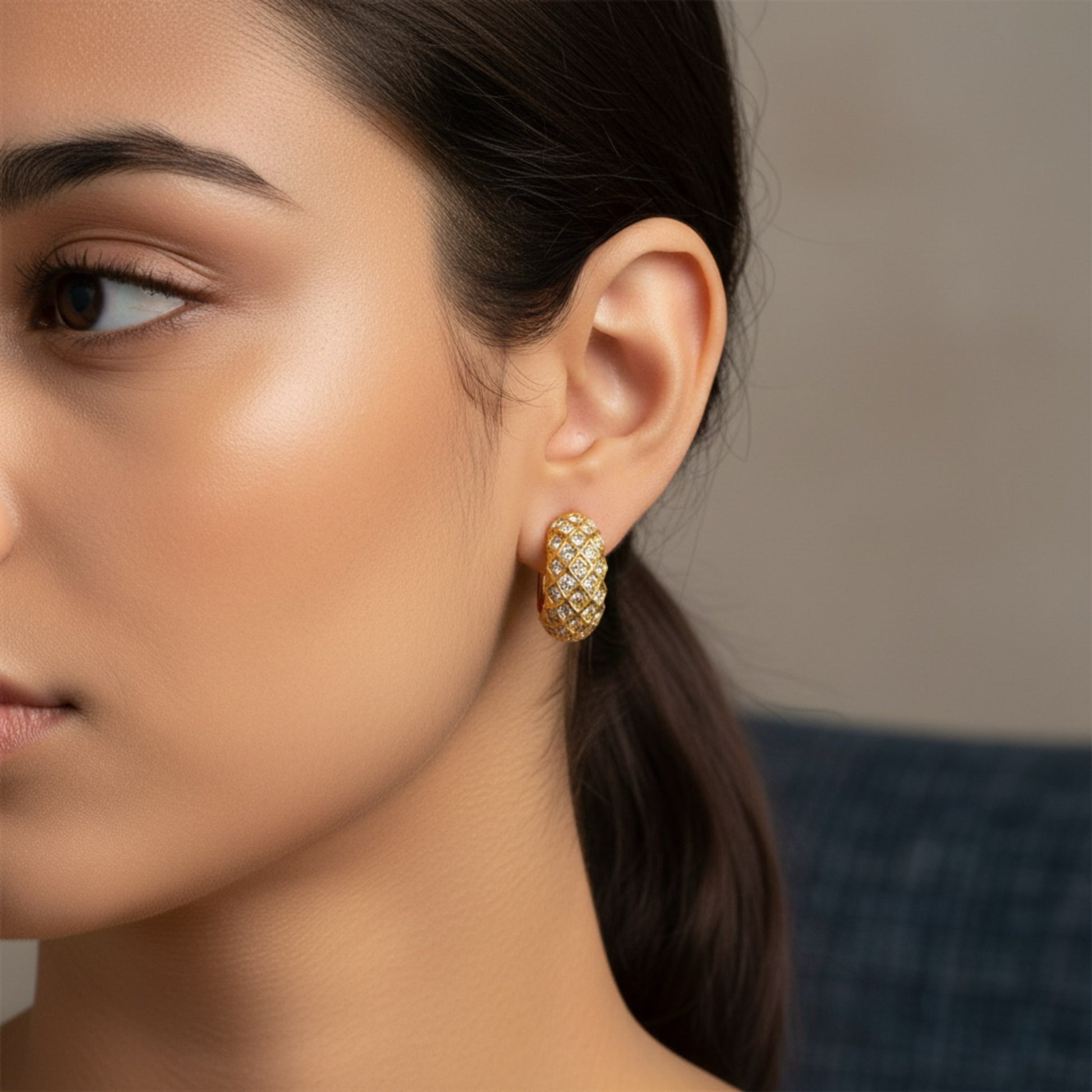 Vintage takı koleksiyonunuza 1980’lerin ışıltılı ruhunu ekleyin! Bu göz alıcı klipsli küpeler, altın kaplama tabanı üzerinde parıldayan taşlarıyla dönemin zamansız şıklığını ve retro cazibesini yansıtıyor. Günlük kombinlerinize sofistike bir dokunuş katmak ya da özel davetlerde dikkatleri üzerinize çekmek için mükemmel bir parça. Her kullanımda geçmişin zarif ihtişamını yeniden yaşatır.