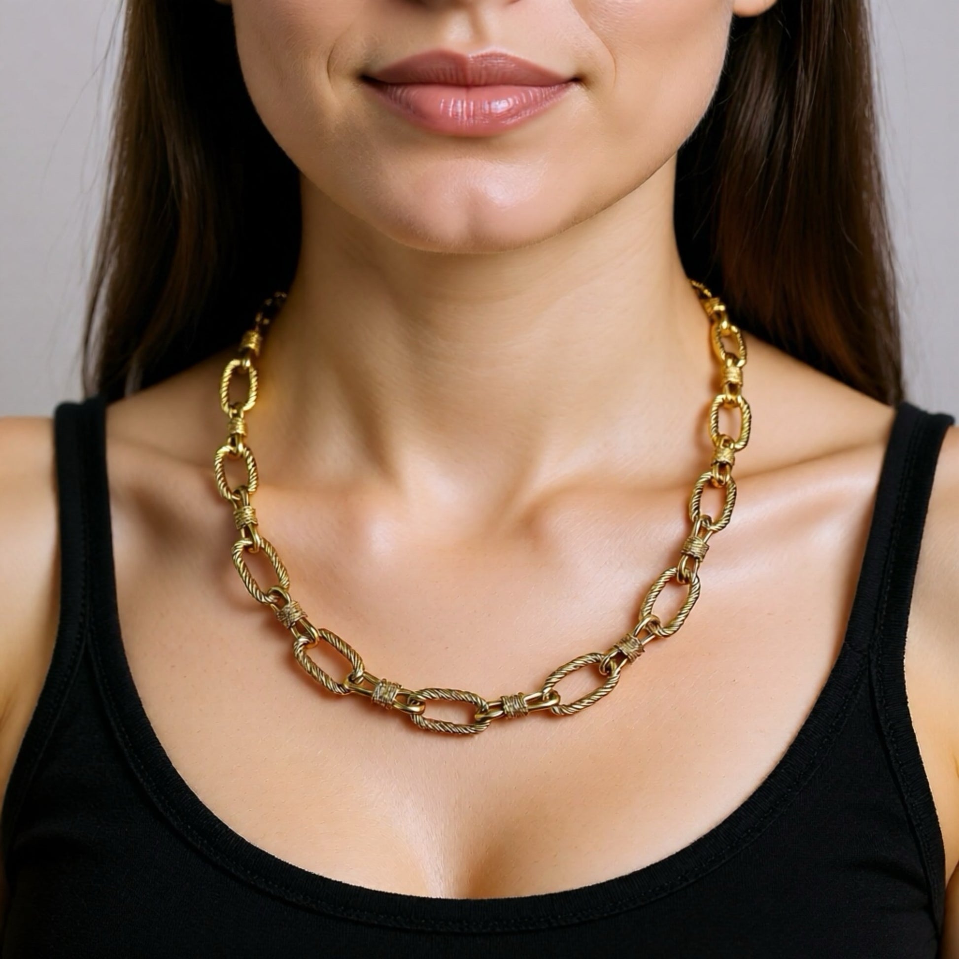Vintage 1980’ler Denizcilik Esintili Bükümlü Zincir Kolye