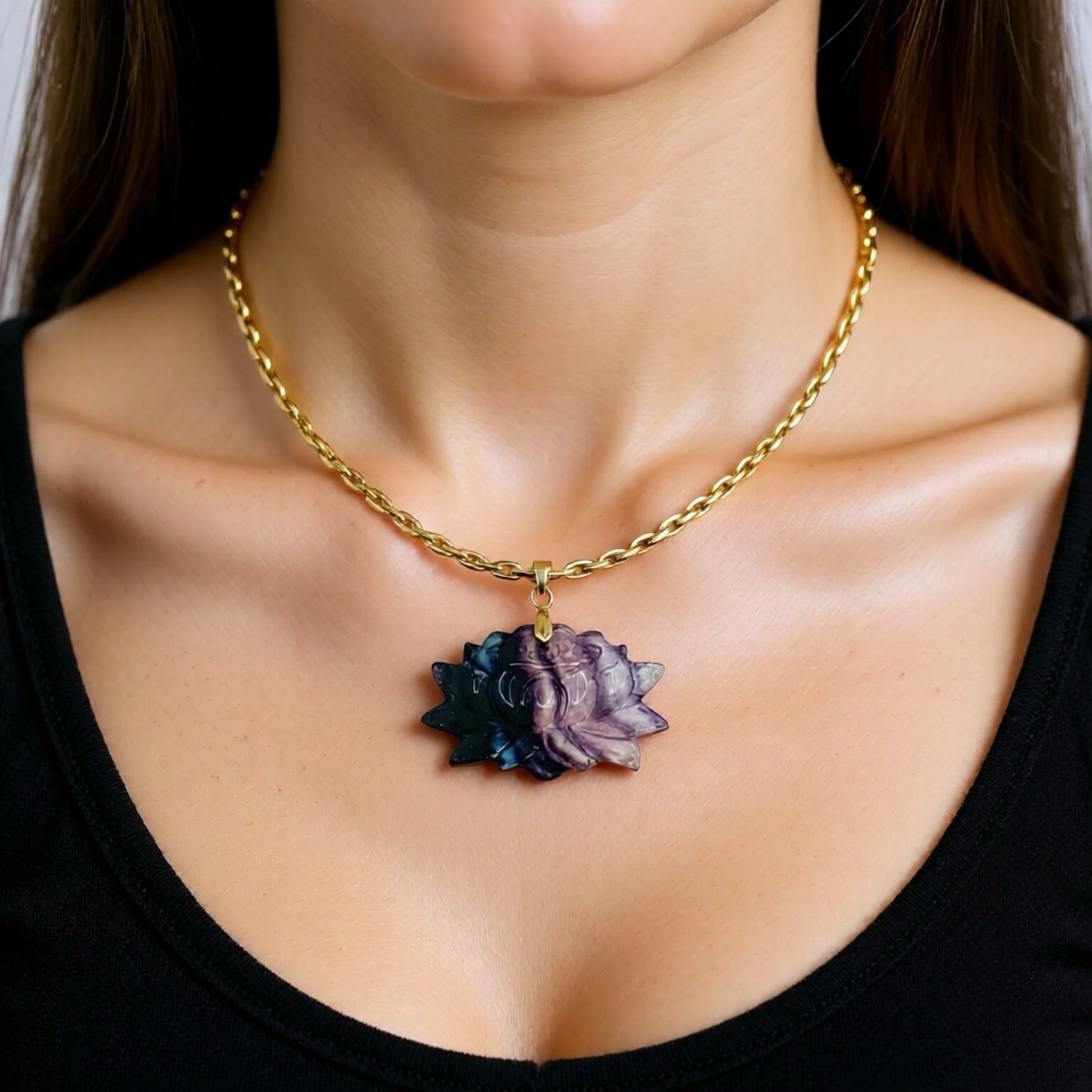 Lotus Doğal Taş Kolye Uçlu Vintage Zincir Kolye