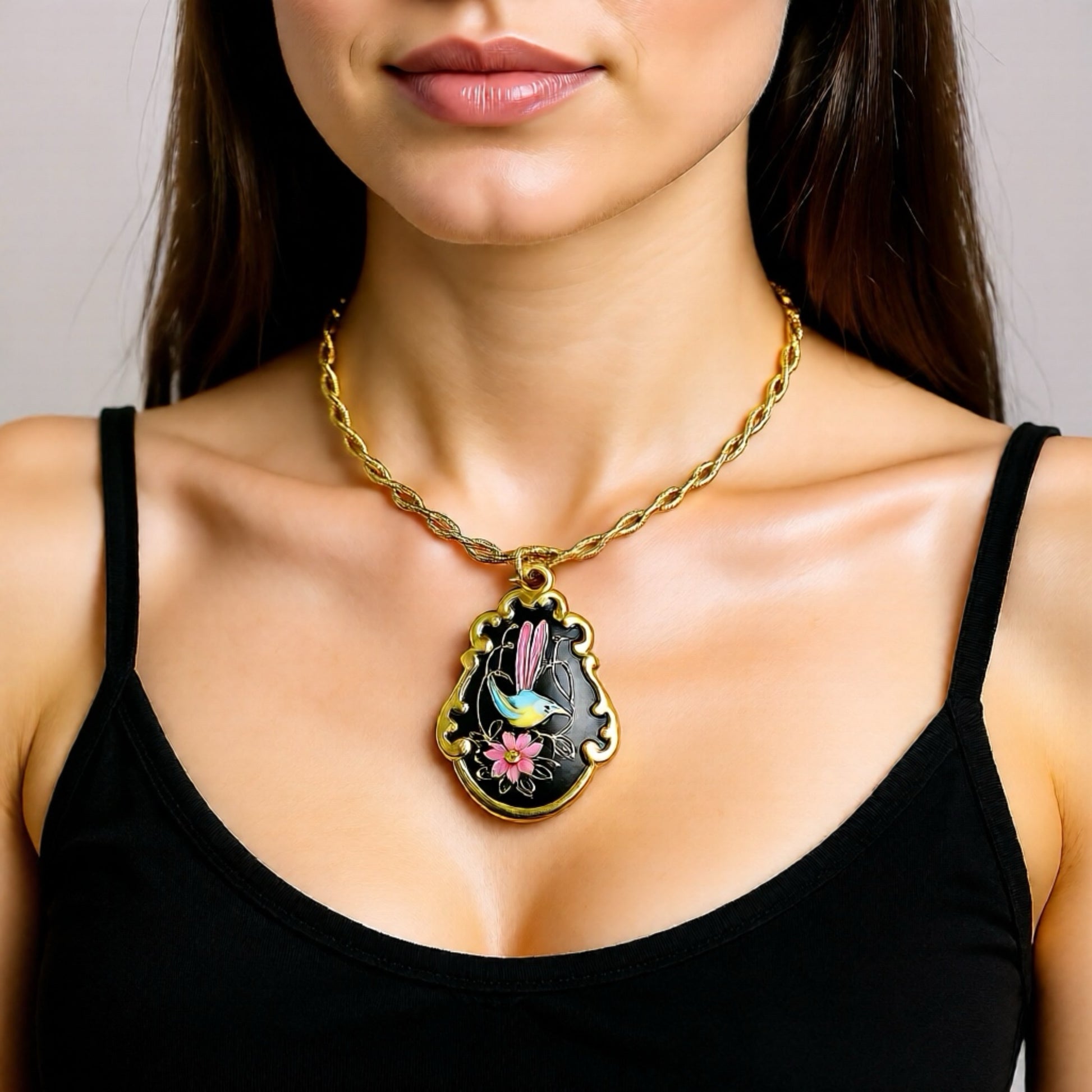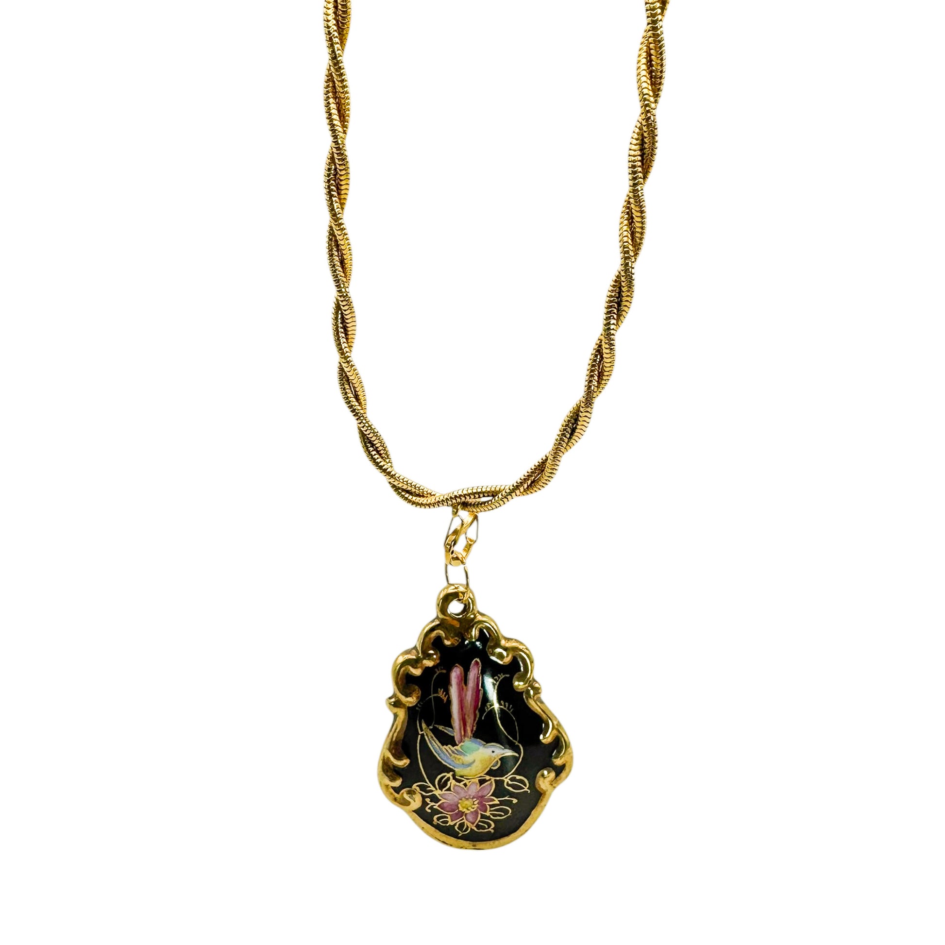 - Tasarım: 1980’ler vintage zincir üzerine el boyaması Bavaria Waldershof porselen kolye ucu