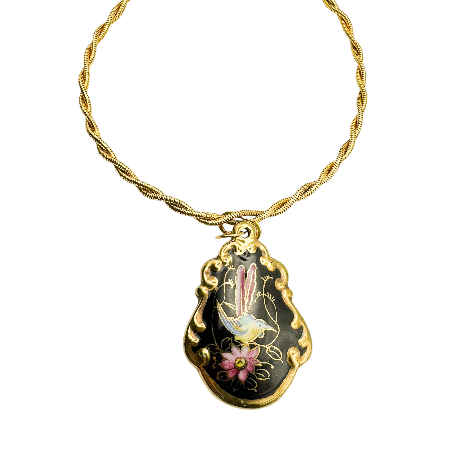 Zamansız sanatı kutlayan bu eşsiz vintage kolye, 1980’lerden altın kaplama zincir ile 1950’lerden nadir el boyaması Bavaria Waldershof porselen kolye ucu kullanılarak yeniden tasarlanmıştır. Zarif porselen kolye ucu, orta yüzyıl ustalığını gözler önüne sererken, vintage zincir klasik bir dokunuş katıyor. Gerçekten tek ve özel bir parça olan bu kolye, sanatı, tarihi ve zarafeti stilinize taşımak isteyen koleksiyoncular ve vintage takı tutkunları için ideal.
