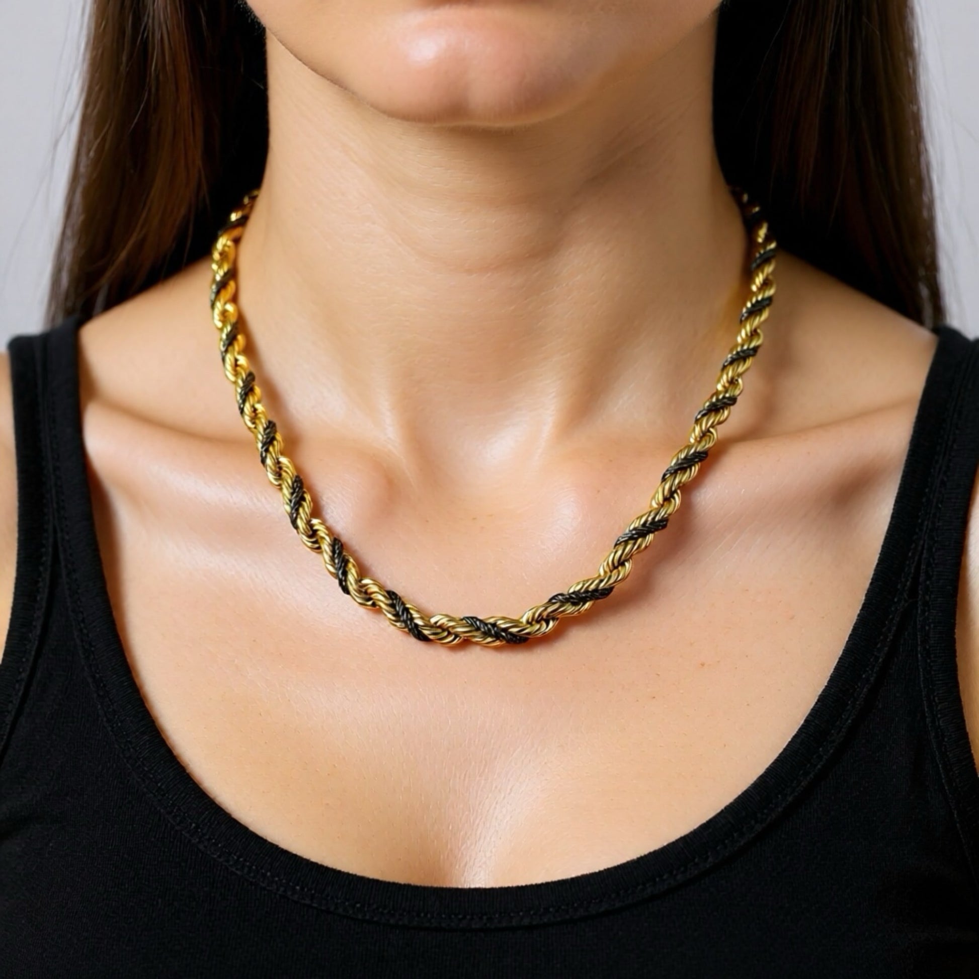 Vintage Altın Gümüş Kaplama Halat Burgu Kolye