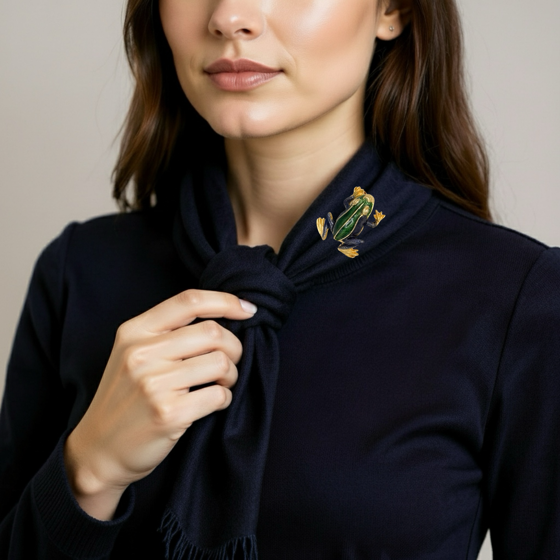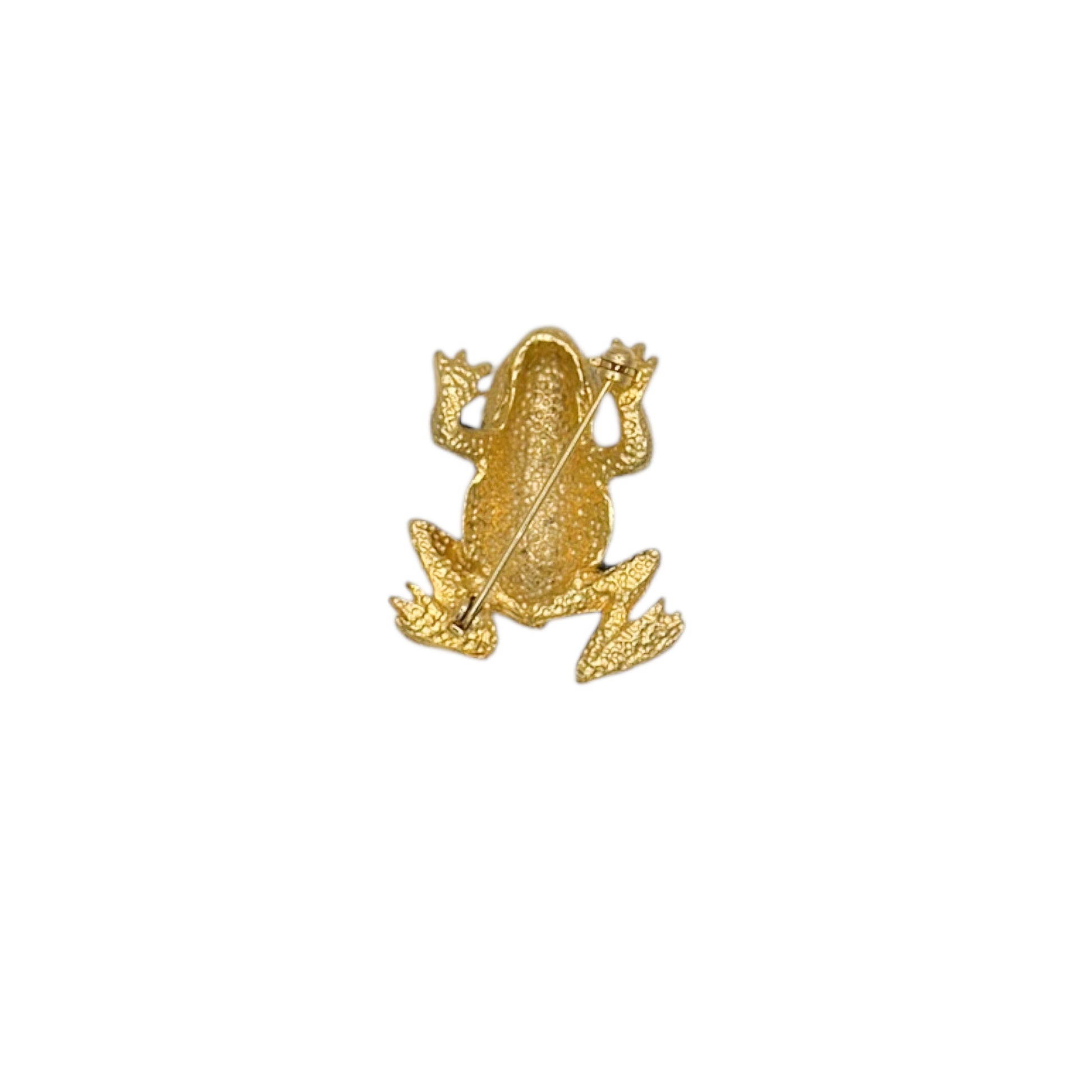 Zamansız bir şıklık katın bu sevimli vintage kurbağa broş ile. Altın kaplama metalden üretilmiş ve canlı yeşil-mavi mine ile süslenmiş bu broş, her kombine neşe ve zarafet katıyor. Ceket yaka kısmına takarak eğlenceli bir dokunuş, elbise veya atkıya ekleyerek renkli bir vurgu ya da çantanızda oyunbaz bir aksesuar olarak kullanabilirsiniz. Vintage cazibe ile modern kullanım kolaylığını bir araya getiren büyüleyici bir parça.