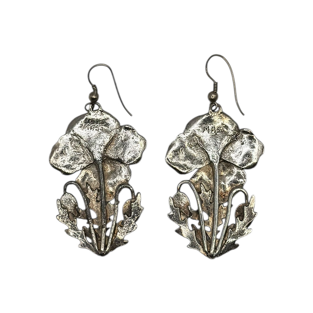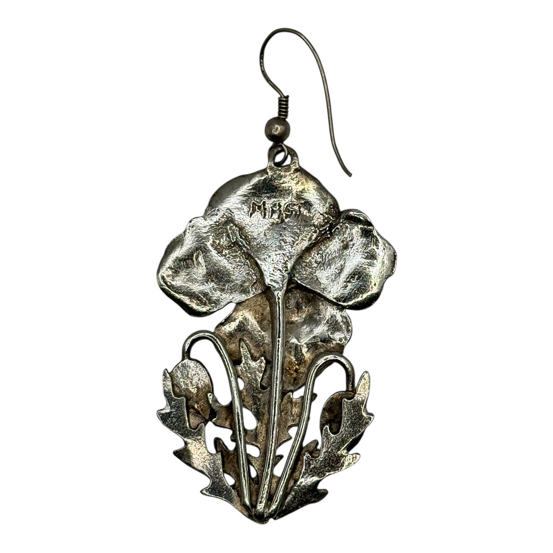Vintage MASJ Gümüş Kaplama Gelincik Çiçeği Küpeler