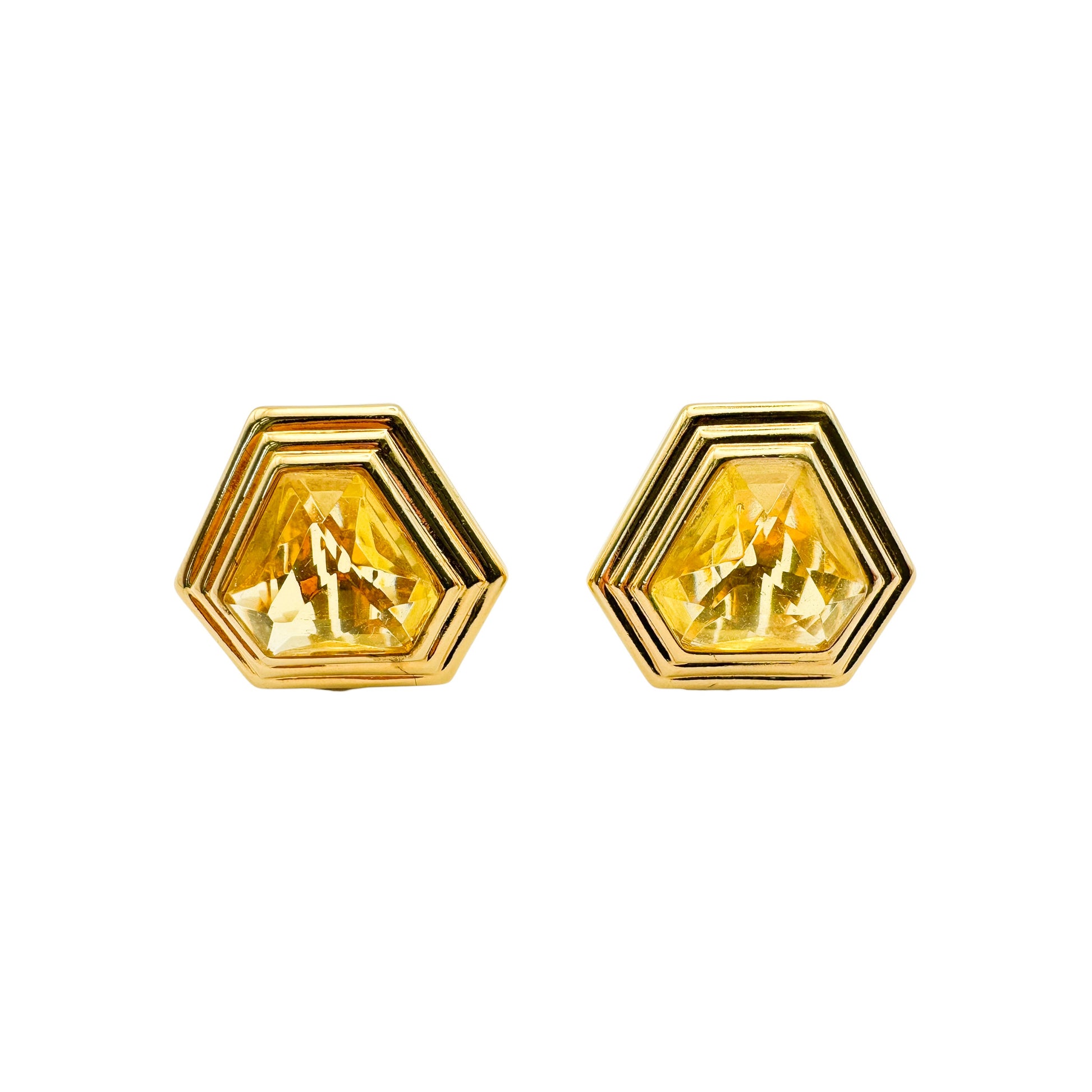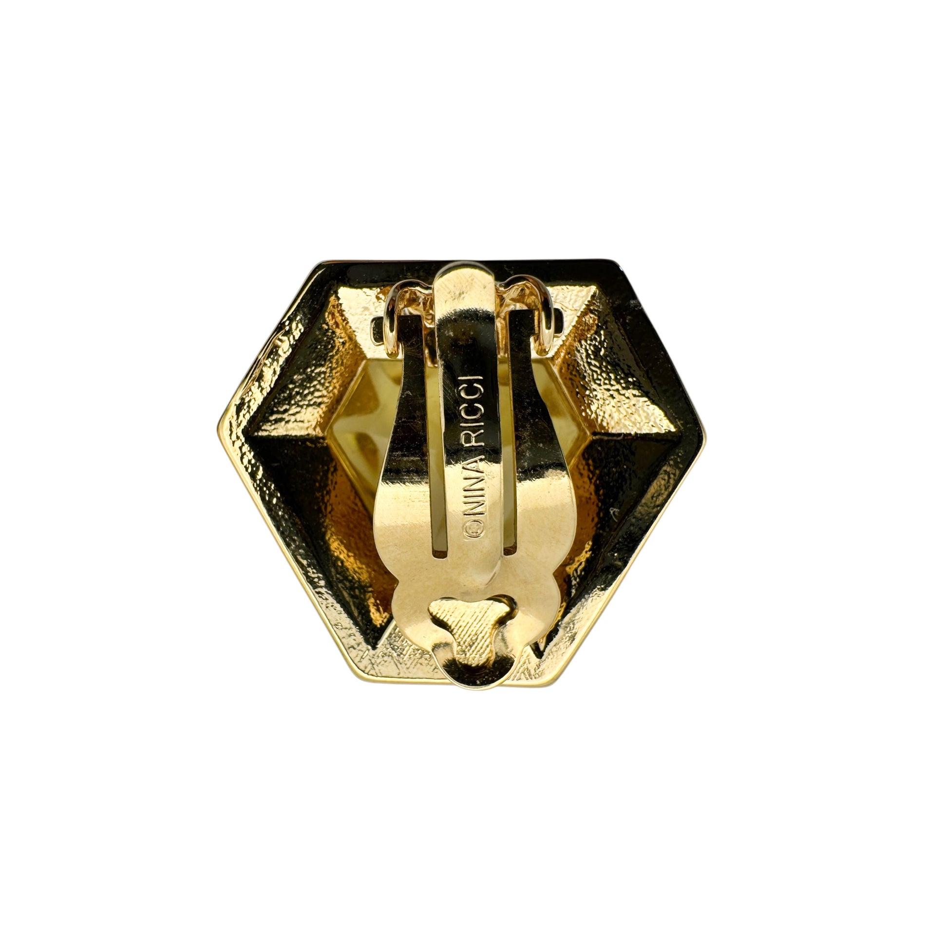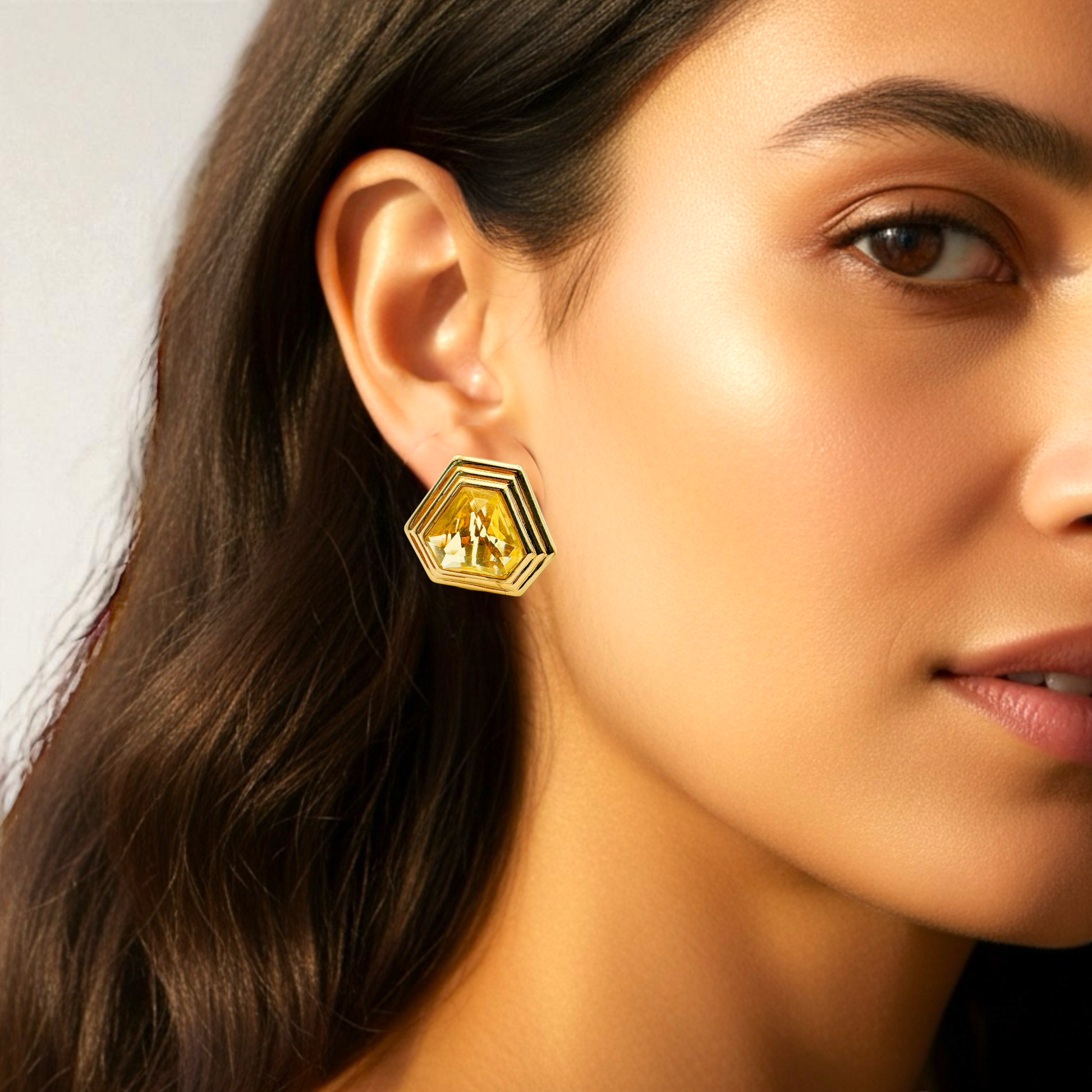 NINA RICCI Üç Kat Altın Kaplama İmitasyon Sitrin Taşlı Beşgen Küpe