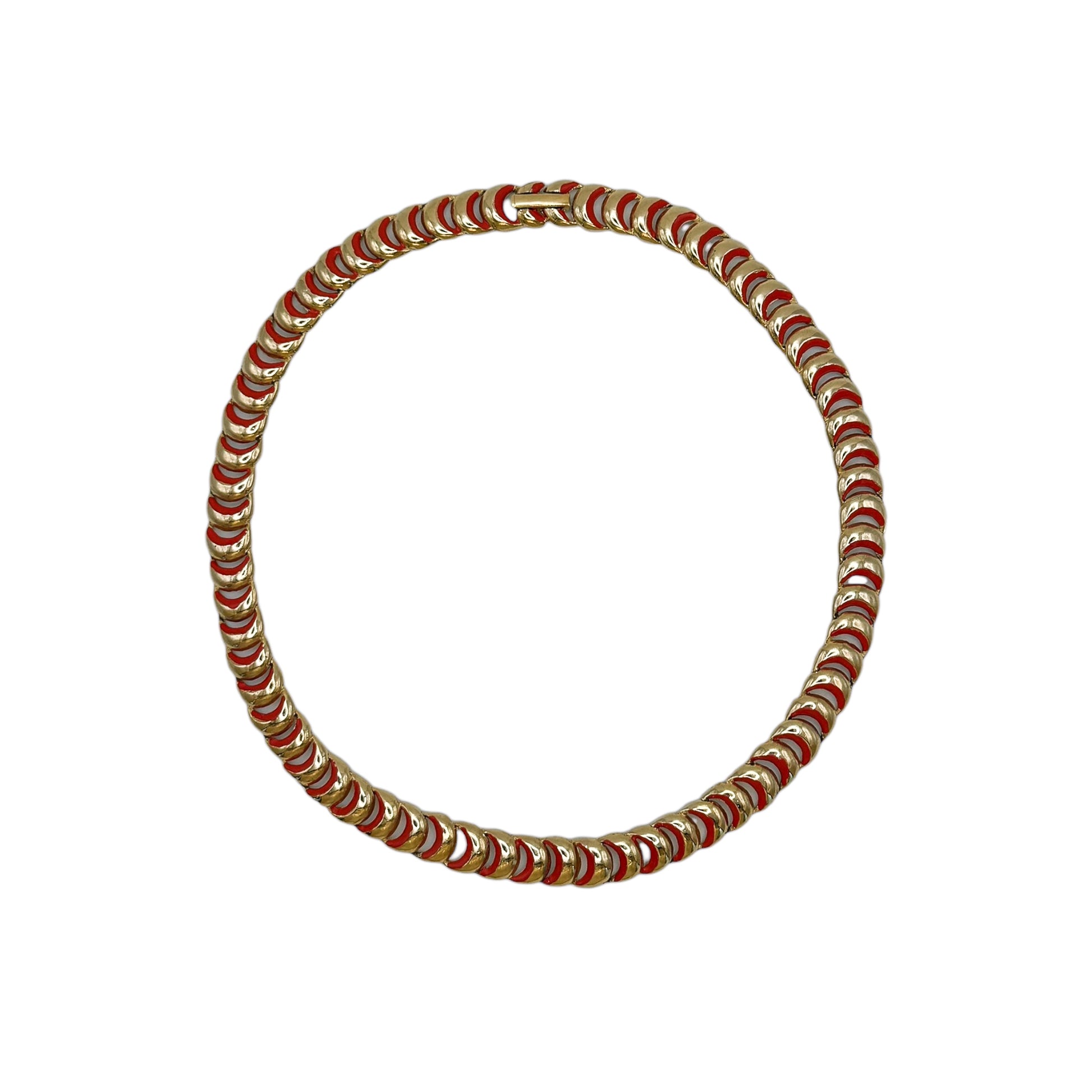 • Tasarım: Kırmızı ve altın halkaların dönüşümlü sıralandığı choker zincir