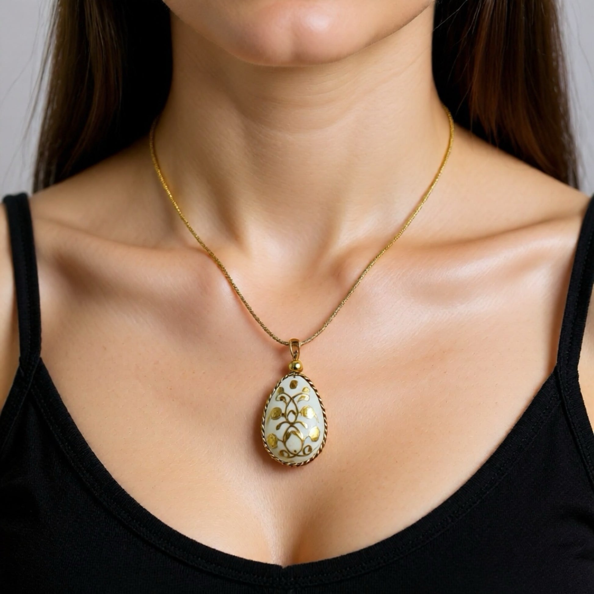 • Malzeme: 24K altın kaplama, el boyaması yumurta kolye ucu