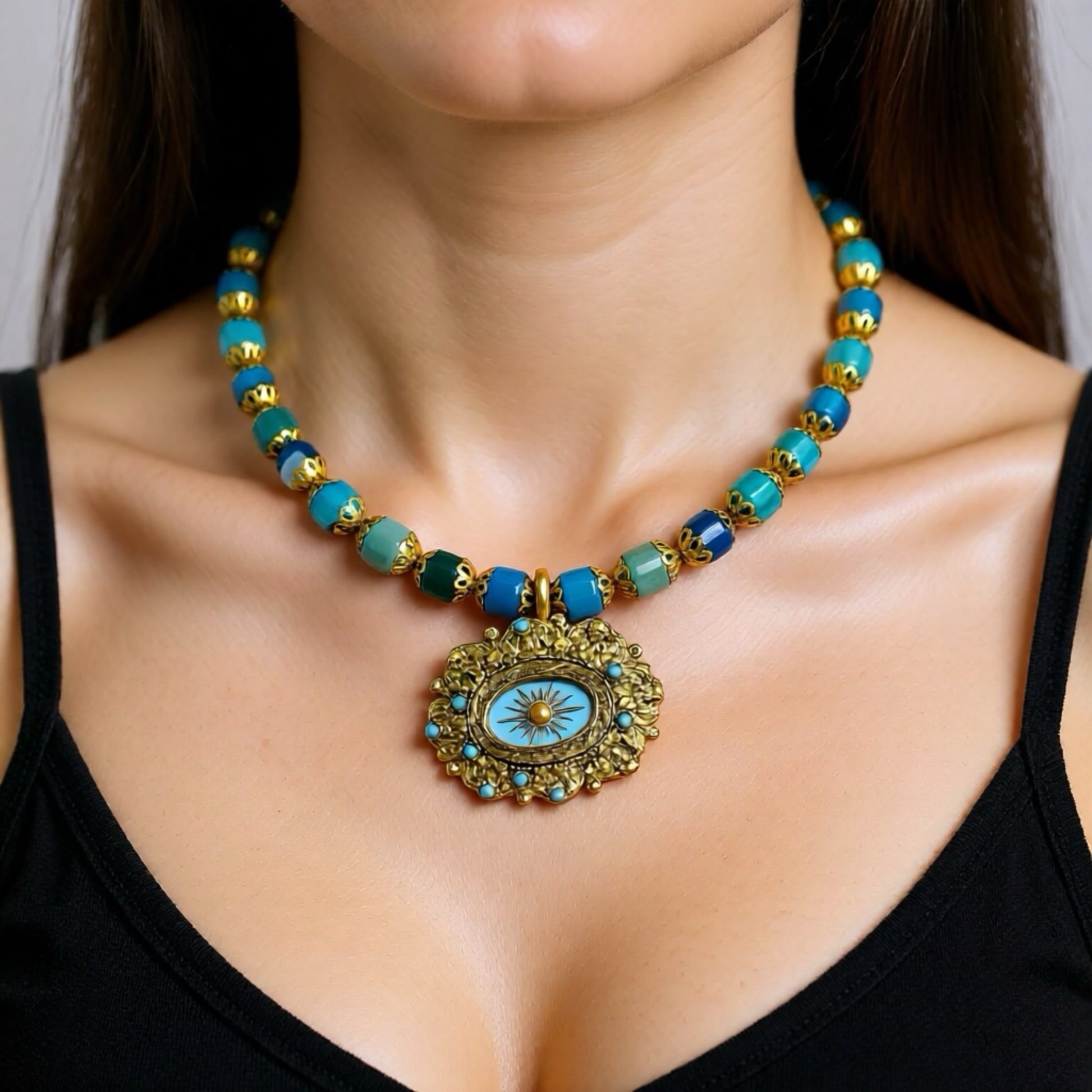 ◦ Kolye ucu olarak stilinize iddialı bir merkez parça ekler