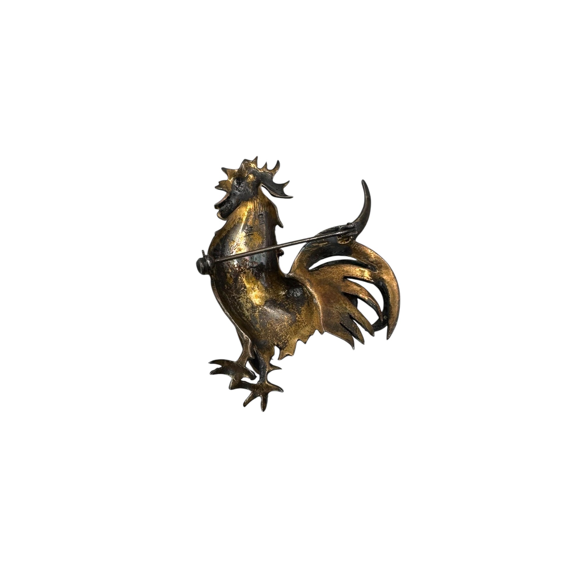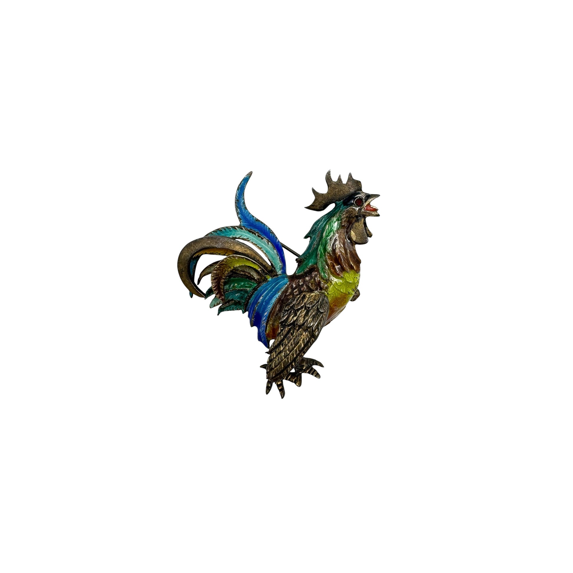 Vintage Almanya Horoz Broş – 925 Ayar Gümüş ve Mine İşlemeli